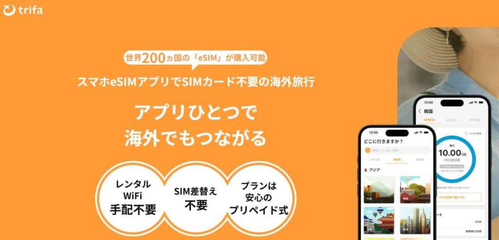 trifa(トリファ)は、日本のスタートアップ企業である「株式会社トリファ」によって運営されているeSIMサービス。